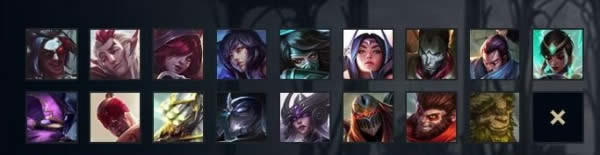影流之镰、幻翎、逆羽、九尾妖狐、暗影之拳、刀锋意志、戏命师、疾风剑豪、天启者、狂暴之心、盲僧、无极剑圣、暮光之眼、暗黑元首、影流之主、齐天大圣、翠神、