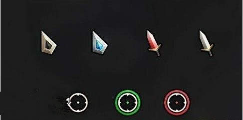 从左往右:上方:默认指针,友方指针,敌方指针,敌方指针-色盲模式)
