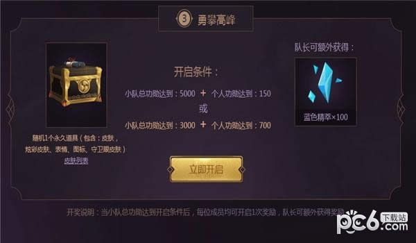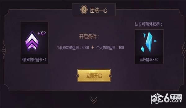 2.开奖说明:当小队总功勋达到开启条件后,每位成员均可开启1次奖励,队长可额外获得奖励