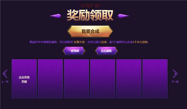 ※物品栏中未领取的道具,可以领取至任意大区,也可以进行合成,每3个道具可以合成1个永久皮肤。