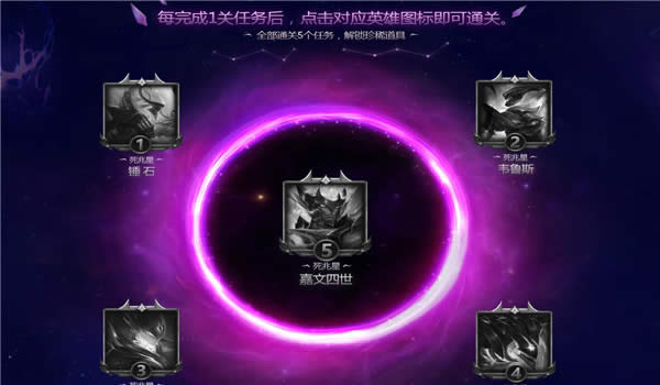3.每关任务完成后,需回到页面上方的黑洞区域,点亮该英雄图标才算正式通关。