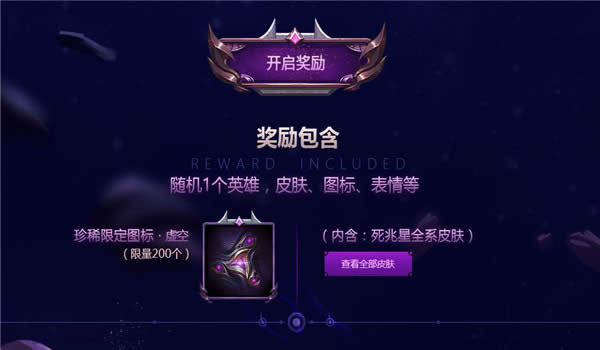 开启开启条件:累计获得300个碎片如果已拥有死兆星 嘉文四世,可选择领取1份死兆星的馈赠