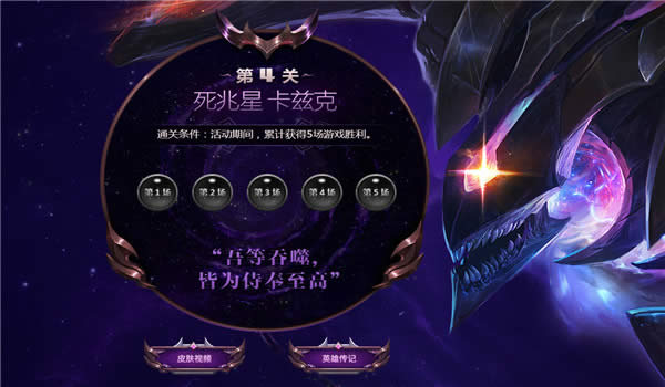 1.活动前4关支持游戏模式:召唤师峡谷排位,匹配自选、极地大乱斗、轮换游戏模式。第5关每日首胜可通过任意模式获得。