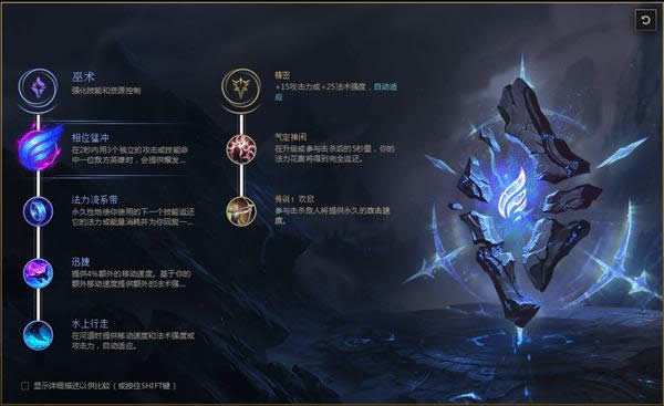 皎月作为一名法师刺客,我们选择相位猛冲来作为基石符文,爆发性的移速可以让皎月更好追击敌人。