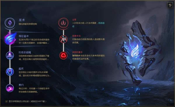 马尔扎哈的虫子能够在短时间内打出高频率的攻击,因此可以选择巫术系的相位猛冲,更好地接近对手R,终极技能帽和超然减CD,焦灼增加烧伤效果搭配E技能传染伤害会很爆炸,副系选择恶意中伤让R技能有真实伤害,贪婪猎手吸血。