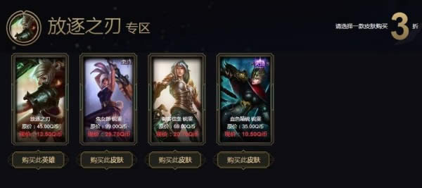 2.每位召唤师每一栏只能选择一款皮肤购买。