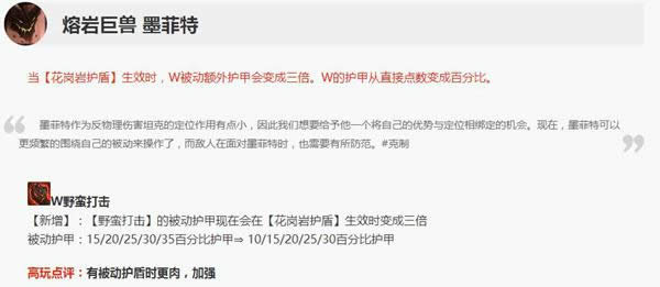 类似于猪女的被动,石头人现在有盾的情况下,能达到190%的护甲值,完全可以抗的下敌方的第一波爆发伤害。