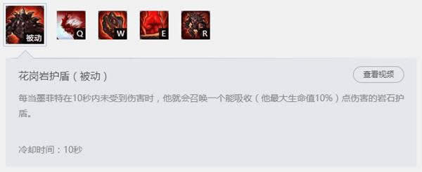 目前石头人实测被动是6秒CD,且不受冷却收缩装备的影响,在玩石头人时,注意最好等出护盾在进攻——毕竟自身护甲、W、E技能的伤害都仰仗这个盾。
