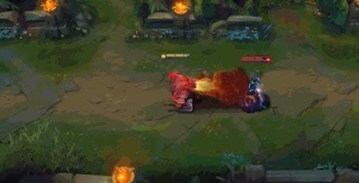 奥尔恩变得势不可挡,为自己加上一层护盾并且喷出火焰。这些火焰将造成敌人当前最大生命值的魔法伤害。被最后一次火焰击中的敌人会被施加一个变脆弱的buff。奥尔恩普通攻击会用双锤重击击退目标并造成大量伤害。