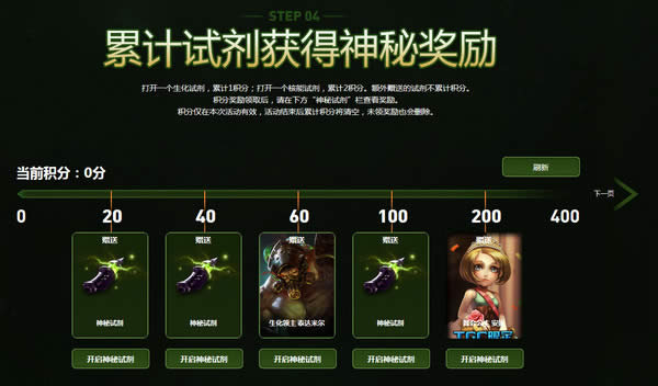 积分奖励领取后,请在下方“神秘试剂”栏查看奖励。