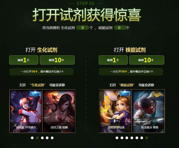 5本次活动提供“打开10个”功能,每次使用“打开10个”功能会额外赠送并打开1个对应等级的试剂。