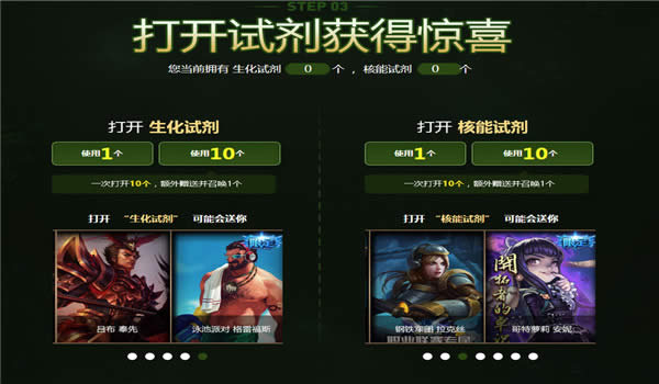5.本次活动提供“打开10个”功能,每次使用“打开10个”功能会额外赠送并打开1个对应等级的试剂。