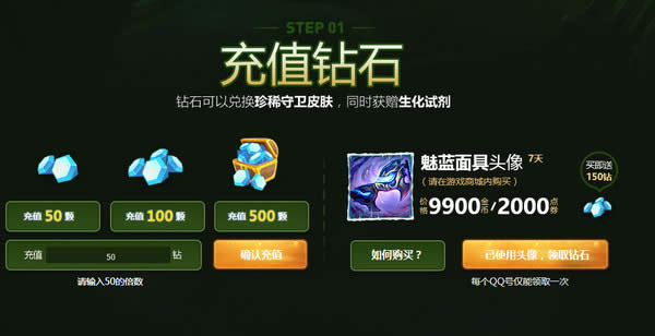 A:目前"魅蓝面具"头像只能在游戏客户端内通过金币或者点券进行购买,成功购买并使用该头像的召唤师即可前往活动页面领取钻石到对应大区。