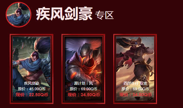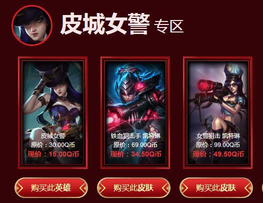 1、指定皮肤超低折扣(选择一款皮肤购买)