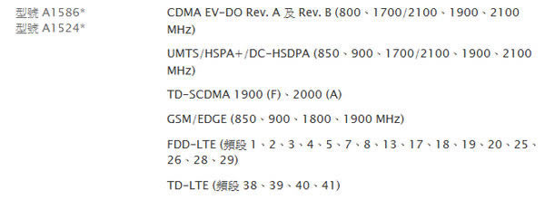 香港公开无锁版本为A1586和A1524