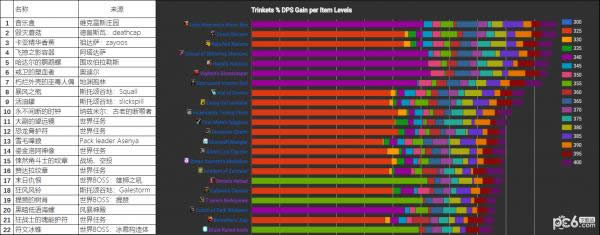 图中装备来源仅包括5人本,世界BOSS及奥迪尔,不包含部分世界任务奖励、大使任务奖励、战场装备、副本小怪掉落。
