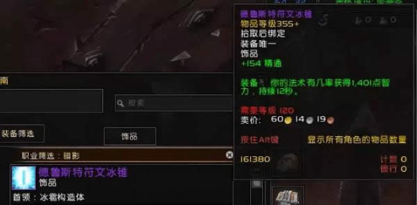 1.[德鲁斯特符文冰锥],任何情况下的最强饰品,来自世界BOSS掉落,目测是新一代的不稳定水晶。
