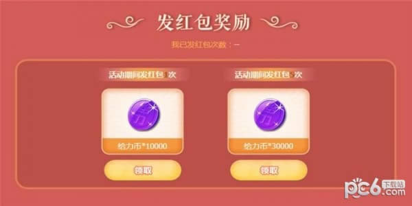 3.发红包1次可获得给力币10000个奖励;发红包5次可获得给力币30000个奖励。如需获得更多抢红包机会,请前往“福气充能”邀请幸运玩家。