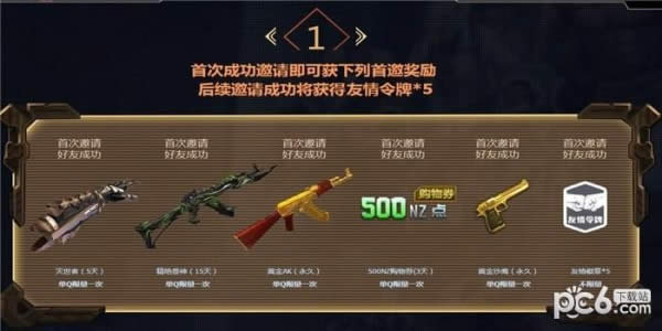 1.首次成功邀请即可获下列首邀奖励后续邀请成功将获得友情令牌*5