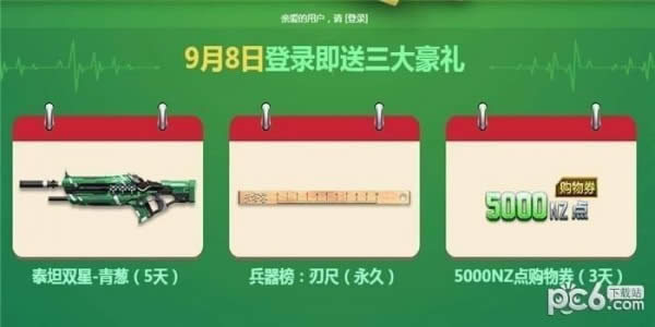 3、9月8日当日登录奖励可直接在游戏内活动中心领取。
