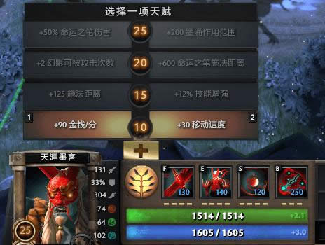 【25级天赋】+50%命运之笔伤害确实很客观,喜欢技能输出的可以选择。+200墨涌作用范围可以提高控制范围,看战况需求选择吧!