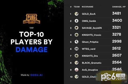 总伤害榜单中,EscA以3481点总伤害再度位居榜首,Lionkk仅以81点之差屈居次席,来自南美洲的Savage战队的SzylzEN以3321点总伤害位列第三。