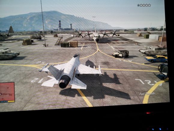 开到战斗机旁边,下车,迅速到战斗机那按△(PS3版),然后富兰克林会踩一下那个舱盖,然后跳进去(很费时间,所以手要快)后面由于一系列操作就很难截图了,不然一下子就被轰死,但我还是可以讲讲上了飞机之后怎么逃首先,上了战机不要兴奋,因为一大波军队已经围住你了(军队,军卡,时有时无的坦克)