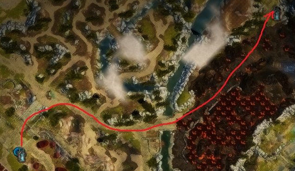 5.血石记得拿给银谷前不远处完成治疗那个宠物任务,如果家园被袭击,这时完成了黑暗任务装备黑暗武器,没有就用暗矿点盗贼武器(需要工艺4,最好图书馆2楼自带科学家的冰法点出,或者刷出加工艺技能的腰带护腕),从地精村出发,箭头处打爆巨大血石解除家园危机,完美解决。