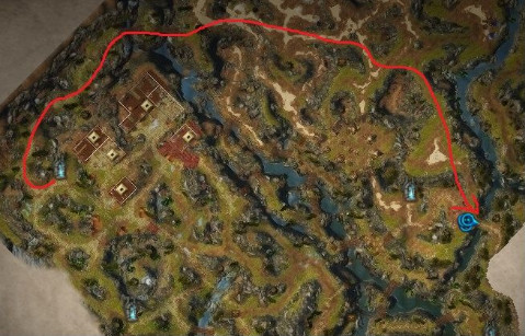 1.盗贼开局学隐身必要条件,北门出发,隐身到箭头处取得第3块血石(前两块在医馆伊芙琳和杰克案发现场)然后在传送点召唤队友集合过图去银谷