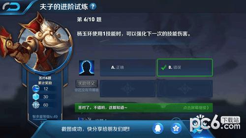 杨玉环使用1技能时,可以强化下一次的技能伤害?是王者荣耀夫子的进阶试炼里面的一道题目,有的玩家可能不太清楚,这里给大家带来了王者荣耀夫子的进阶试炼“杨玉环使用1技能时,可以强化下一次的技能伤害”答案。