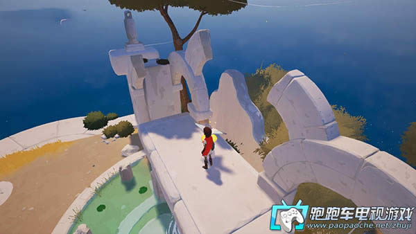 2、 一章在解锁小狐狸的楼梯位置左转,通过侧面斜坡可以到达一个新的悬崖,悬崖尽头的遗迹可以收集到——海鸥玩偶