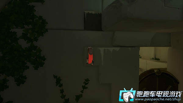 3、 一章通过下图的门之后右手边发现荆棘挡路,拽一颗果子,带着一头猪可以将荆棘拱开,随后在里面发现——猪玩偶