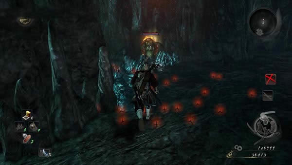 河童是那种背着龟背壳,跑路速度很快的敌人。在主线任务的地图中,你也偶尔能够发现它的踪迹。击败它能够获得丰厚的奖赏,然而它的血很厚,跑得又很快,而且会钻入“常世”,把自己传送到不知哪里去,因而在主线中挑战河童有一定的难度。不过好在这个支线任务中,它不会传送自己,只会四处奔命,这为我们刷钱创造了条件。