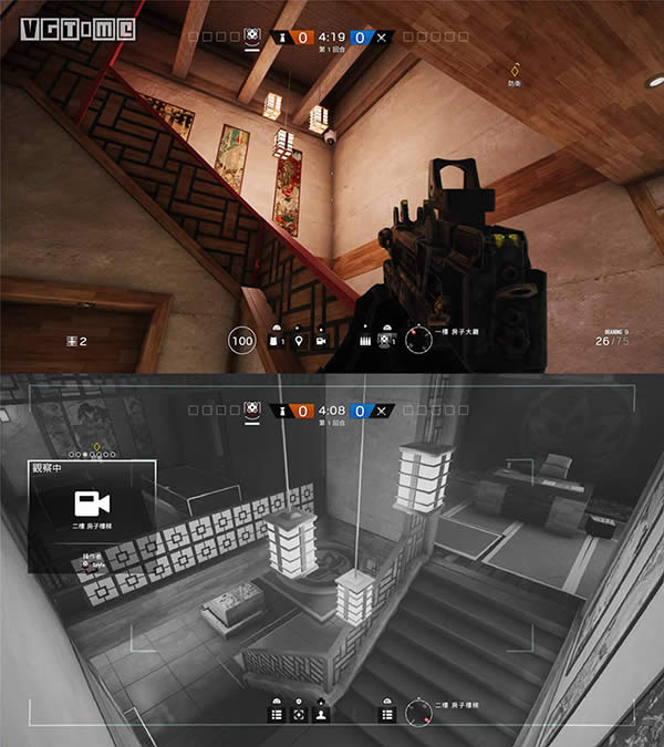 这张地图分为上下两层,相较于贫民窟的立体结构,这张图大小不一且四处相通的房间在刚开始接触的时候会经常出现转角遇到爱的情况,不过好在每个房间特点鲜明所以在多次游玩后即可大体熟悉地图结构。由于平面面积大,所以打野选手在熟悉地图的情况下能很熟练的进行绕后。进攻方在外面对室内造成的影响远远低于沙县和贫民窟,部分点位需要进入建筑物内部才能看见。玩起来的话有点像木屋和边境的结合体。
