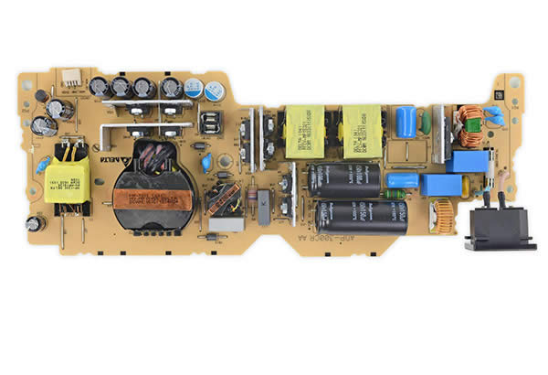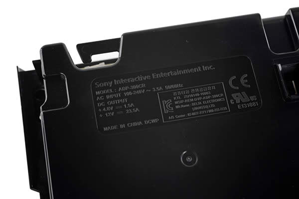 现在我们集中精力对付电源。2013年发售的初版 PS4 电源功率为 165W,而 PS4 Pro 的电源功率则高达 289W(1.5 A @ 4.8 V +23.5 A @ 12 V)。根据官方技术细节,PS4 Pro 总共功率是 310W。这中间的一些差距应该是消耗在了从交流到直流的转换上。