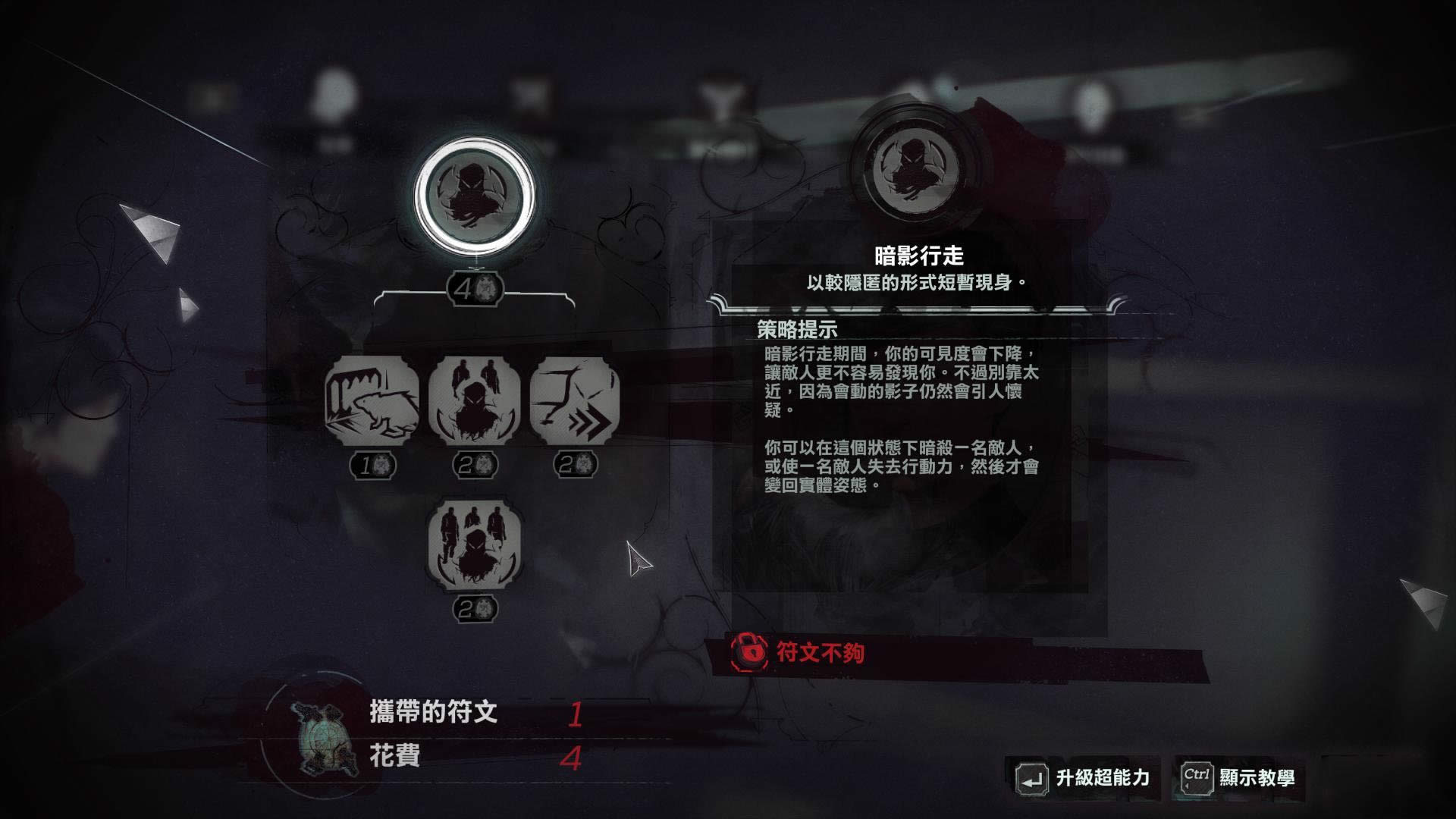 升级暗影行走,可以让你化作老鼠,在狭小的隧道中移动。或者让你能够在变回实体姿态前最多暗杀两名敌人(最高升级为三名)。