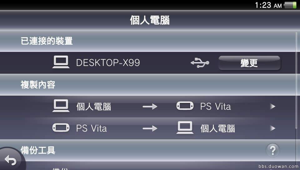 选择个人电脑到PSV