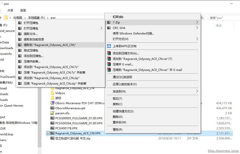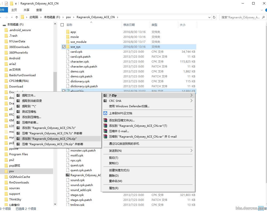 2.eboot.bin和sce_sys文件夹右击7z打包zip重命名vpk(比如打包eboot.bin和sce_sys为PCSG00005.vpk)