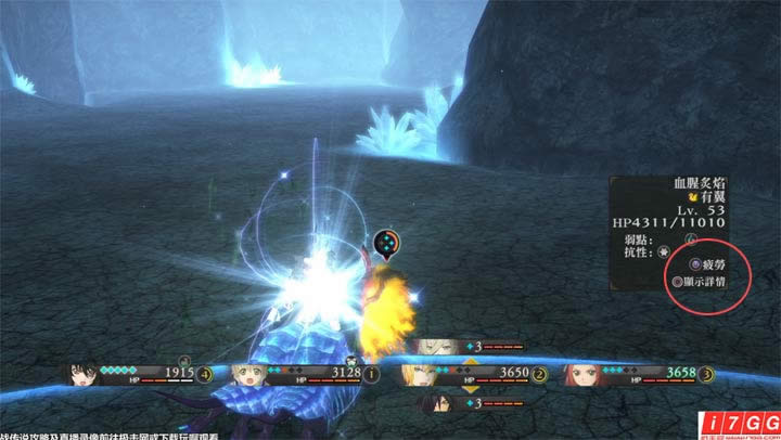 2、攻击目标敌人使其进入异常状态,异常状态包括:昏厥、燃烧、麻痹、缓慢、中毒、疲劳。
