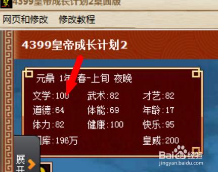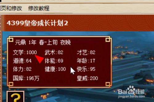 最后打开皇帝成长计划2,你会发现文学已经变成1000了,其他的属性也以此类推