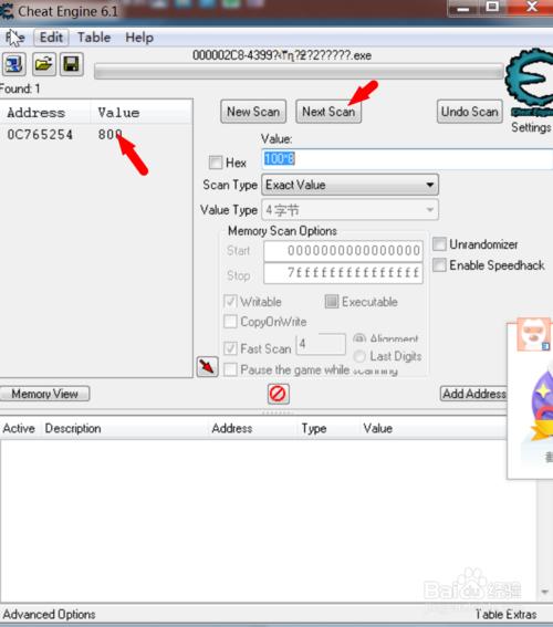 在CE输入100*8,点击再次搜索(我的是英文版,所以是Next Sacn),你会发现只剩下一个数了